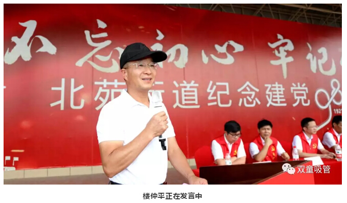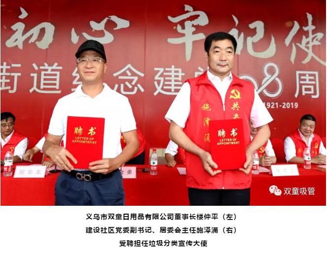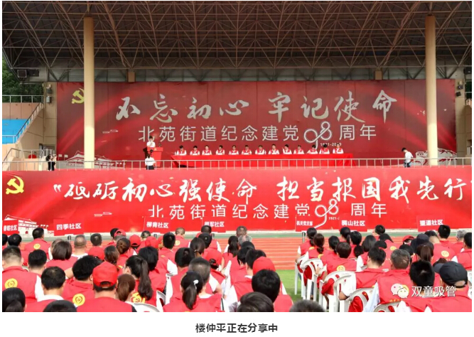 這不,6月29日上午,北苑街道為紀(jì)念中國共產(chǎn)黨成立98周年,開展了建黨98周年慶“七一”專題千人大黨課?!半p童”樓仲平也受邀參加了此次活動,并受聘擔(dān)任了垃圾分類宣傳大使!