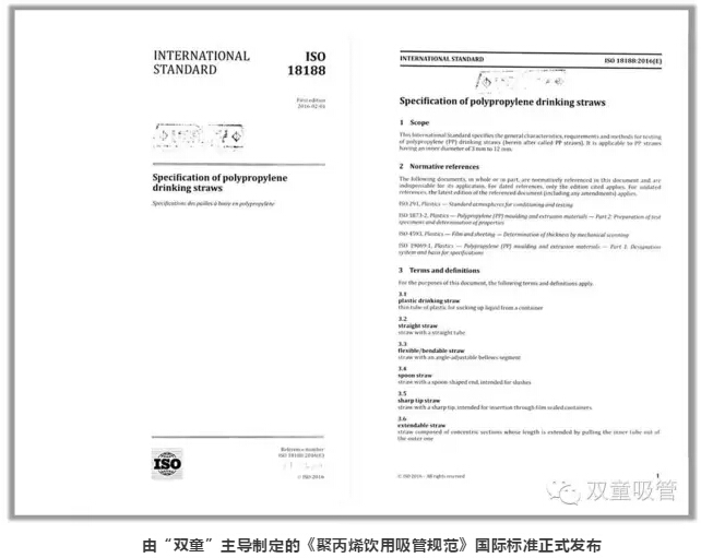 在大多數(shù)人沒有意識到標(biāo)準(zhǔn)的重要性時(shí),“雙童”早在20多年前就意識到標(biāo)準(zhǔn)制定權(quán)和行業(yè)話語權(quán)的重要性。從1997年開始,“雙童”先后主導(dǎo)起草了《聚丙烯飲用吸管》的行業(yè)標(biāo)準(zhǔn)、浙江標(biāo)準(zhǔn)、國家標(biāo)準(zhǔn)、ISO國際標(biāo)準(zhǔn)等國家級標(biāo)準(zhǔn)的編制工作,從而牢牢掌握住全球吸管行業(yè)發(fā)展的脈搏,獲得了全球吸管產(chǎn)業(yè)的標(biāo)準(zhǔn)制定權(quán)和行業(yè)話語權(quán)!