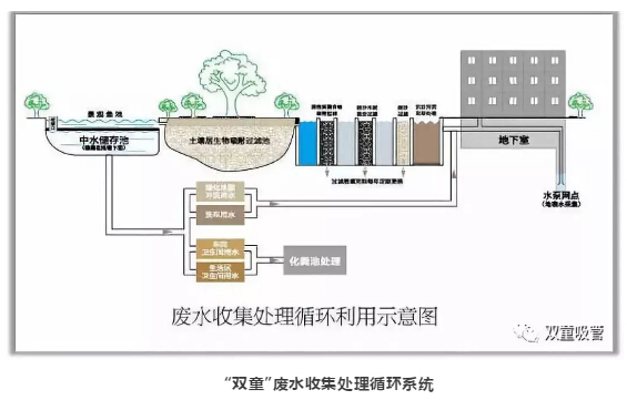“雙童”景觀湖可不只是美化了環(huán)境,在碧綠的湖水下面還藏著中水儲存池!