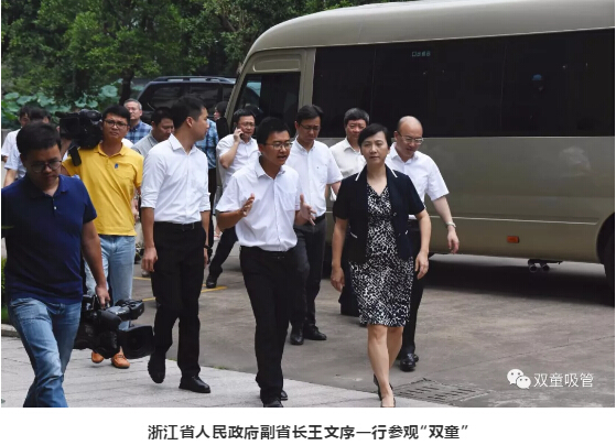7月21日上午,浙江省人民政府副省長王文序,在金華市委副書記、市長尹學(xué)群,金華市委常委、義烏市委書記林毅等領(lǐng)導(dǎo)的陪同下,到“雙童”考察調(diào)研。