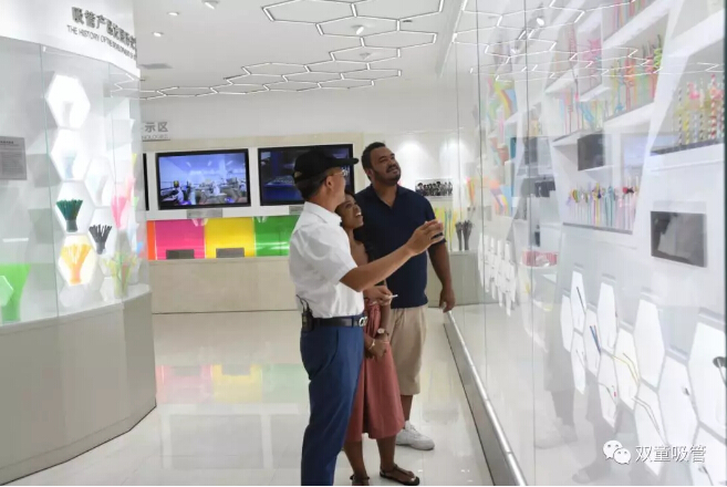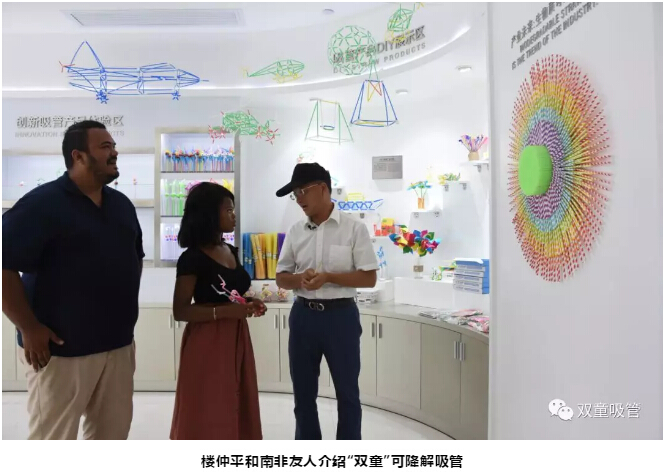 接著,南非友人被“雙童”可降解吸管吸引住了,在聽了樓仲平對(duì)“雙童”PLA生物質(zhì)可降解吸管、“雙童”紙質(zhì)吸管等一番介紹后,他們覺(jué)得十分不可思議,一根吸管不僅可以玩出這么多花樣,還可以做得如此環(huán)保!