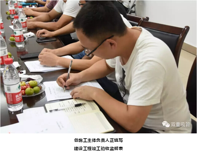 驗(yàn)收完成后,大家在會(huì)議室開展了“雙童”二期智能化工廠的竣工總結(jié)會(huì),對(duì)大樓的施工情況、主要工程、質(zhì)量評(píng)估等方面進(jìn)行匯報(bào),并現(xiàn)場(chǎng)填寫了建設(shè)工程竣工驗(yàn)收監(jiān)督表。歷經(jīng)300天的建設(shè),“雙童”二期智能化工廠正式竣工交付使用。