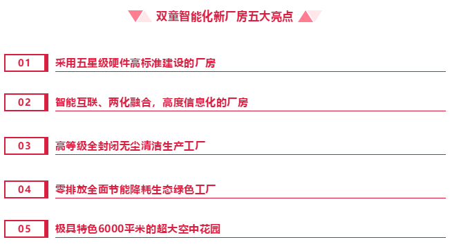 “雙童”智能化工廠按高規(guī)格的建筑標(biāo)準(zhǔn),所有硬件都采用“五星級(jí)”標(biāo)準(zhǔn),硬件標(biāo)準(zhǔn)之高將超乎一般制造業(yè)企業(yè)的想象!