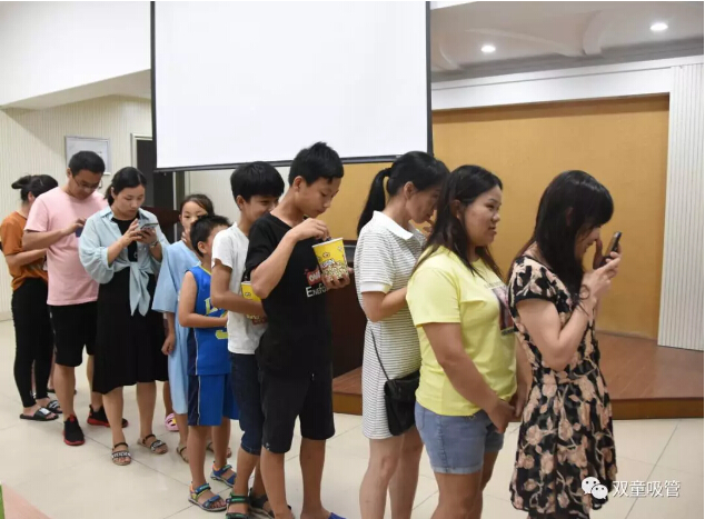 因為這是一場員工生日會與“雙童影院”在一起舉辦的超規(guī)格生日會。瞧!壽星和影迷們都早早到現(xiàn)場等候了。正值暑假,還吸引來一批“雙童寶貝”呢!