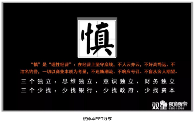 做企業(yè)也是如此,在經(jīng)營上要有自己的獨立判斷,堅守底線,不人云亦云,一切以商業(yè)本質(zhì)為考量,不追隨潮流、不響應(yīng)號召、不盲從旁人期望。基于以上,樓仲平也總結(jié)出“三個獨立”和“三個少找”: