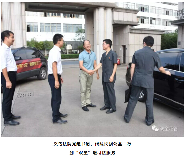 9月9日下午,在“70法官服務(wù)70+企業(yè),打造最佳營商環(huán)境”活動的啟動儀式后,義烏法院黨組書記、代院長胡公益帶領(lǐng)蘇溪法庭、知識產(chǎn)權(quán)庭、辦公室等部門負(fù)責(zé)人第一時間到達(dá)“雙童”,了解企業(yè)在生產(chǎn)經(jīng)營過程中的司法需求及送司法服務(wù)。