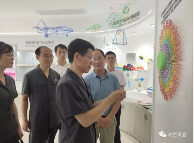 “雙童”樓仲平與總經(jīng)理李二橋帶領(lǐng)胡公益院長一行來到中國吸管博物館。大家一起參觀了產(chǎn)品發(fā)展歷史展示區(qū)、吸管生產(chǎn)技術(shù)展示區(qū)、吸管產(chǎn)品形態(tài)展示區(qū)等各類吸管的展示區(qū)域,了解了吸管的發(fā)展與變遷。