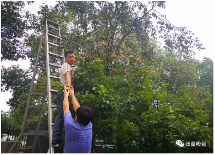 過(guò)不了幾天,柿子就熟透了,瞧!紅彤彤的多誘人呀!每年“雙童”的柿子都會(huì)拿到食堂,讓大家共享這香甜和豐收的喜悅~