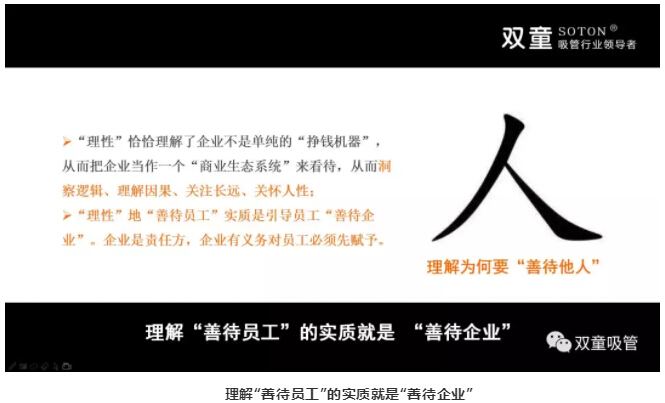 當(dāng)你用“利他”去交換“利己”時(shí),本質(zhì)還是商業(yè),還是西方理性科學(xué)當(dāng)中的規(guī)則和規(guī)范。如果你解決了員工的困難,在未來某個(gè)時(shí)刻,一定會(huì)獲得他們的回饋。最終,“理性”地“善待員工”實(shí)質(zhì)是引導(dǎo)員工“善待企業(yè)”!