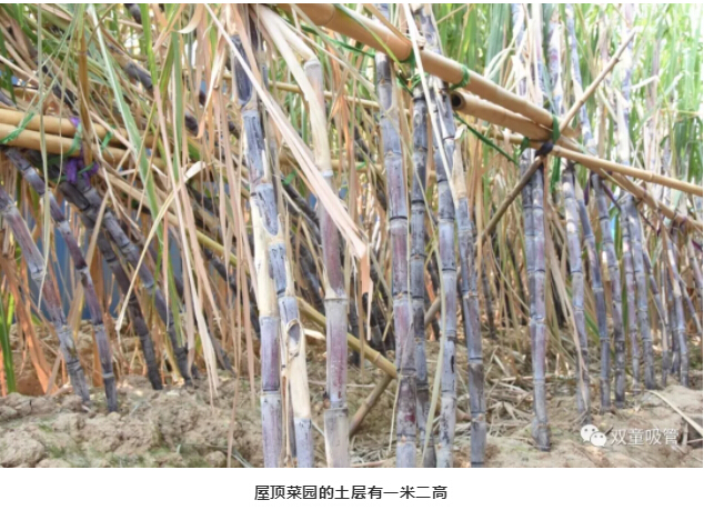 很多人會(huì)奇怪,為何空中還能種甘蔗呢?其實(shí),我們屋頂菜園有一米二高的土層,別說甘蔗,石榴樹枇杷樹也照樣種呢!