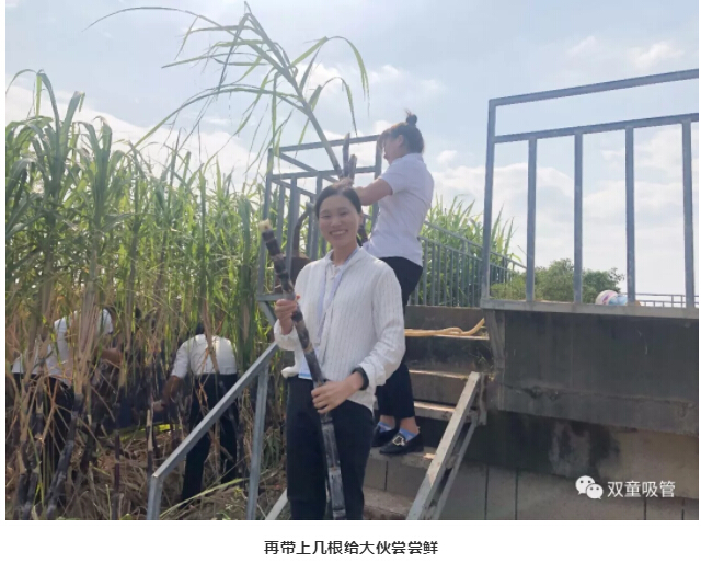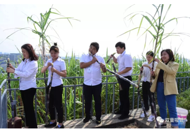 每逢甘蔗季,來“雙童”參觀的客人們也忍不住下到甘蔗地里親自收割甘蔗,品嘗“雙童”的果實(shí)!