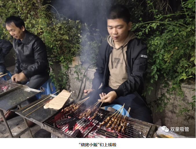 大家圍坐在烤爐前爭(zhēng)當(dāng)“燒烤小販”,為壽星們進(jìn)行服務(wù)。大伙手上的肉串還沒(méi)吃完,“燒烤小販”們已經(jīng)笑瞇瞇地把新烤好的肉串奉上了,吃都來(lái)不及,這是什么節(jié)奏!