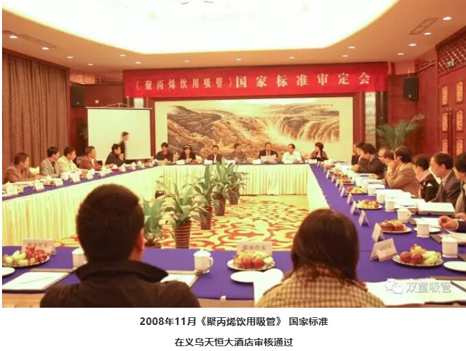 其實(shí),在標(biāo)準(zhǔn)編制起草過程中,“雙童”也曾邀請(qǐng)一些同行企業(yè)共同參與,但由于當(dāng)時(shí)大家的標(biāo)準(zhǔn)意識(shí)還比較薄弱,再加上標(biāo)準(zhǔn)編制過程中還需要企業(yè)承擔(dān)一定費(fèi)用,這讓其他企業(yè)都望而卻步,“雙童”自然地成為了吸管行業(yè)承制國(guó)家標(biāo)準(zhǔn)的單一企業(yè)。2008年11月,《聚丙烯飲用吸管》 國(guó)家標(biāo)準(zhǔn)審定會(huì)在義烏天恒大酒店召開。會(huì)上審核通過了該項(xiàng)國(guó)家標(biāo)準(zhǔn),成為當(dāng)時(shí)金華地區(qū)第一件完全意義上的國(guó)家標(biāo)準(zhǔn)。