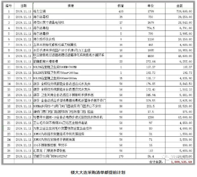 今年雙十一,樓大大聯(lián)合團隊一起買了400臺格力空調(diào)、39臺海爾消毒柜、80臺進口閉門器、門鎖170把、9臺投幣洗衣機、17臺各型號彩電、9臺洗衣機..... 為新廠房增添設(shè)備,所有設(shè)備都采用高品質(zhì)的品牌,一百多萬直接貢獻給天貓啦!