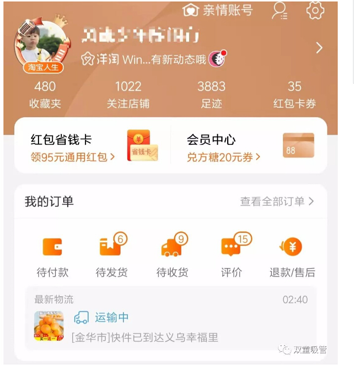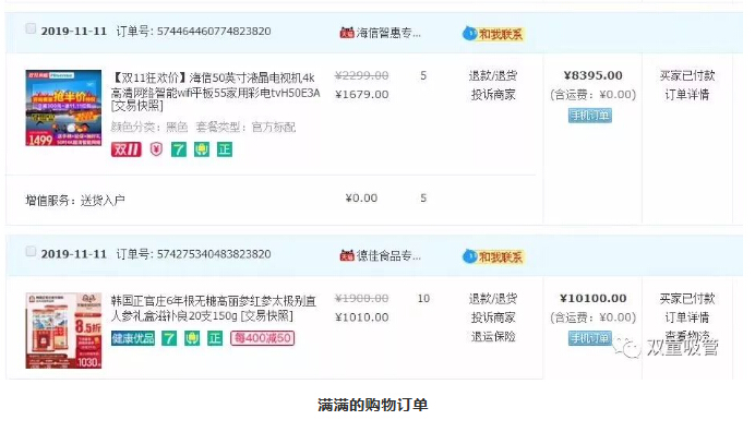 要說“雙童”人的雙十一戰(zhàn)績,剁手黨真得歸樓大大莫屬啦!樓大大作為資深的淘寶鐵粉,在淘寶上下單無數(shù),日?!俺院壤觥倍荚谔詫毥鉀Q,連樹木、盆栽、魚苗都在淘寶購買,真是資深的“剁手黨”啦!