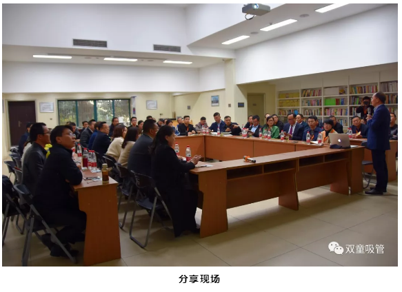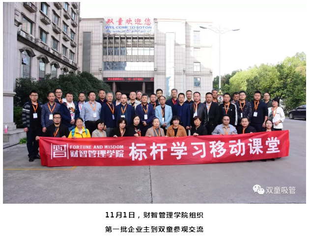 11月19日下午,江西財(cái)智管理學(xué)院的近60位企業(yè)主來到“雙童”參觀交流。這已經(jīng)是江西財(cái)智管理學(xué)院團(tuán)隊(duì)第二次走進(jìn)“雙童”了。原來,樓仲平曾多次在江西財(cái)智管理學(xué)院授課,大家對“雙童”及樓仲平的經(jīng)營思維特別感興趣,先后組織了兩批企業(yè)主來到“雙童”學(xué)習(xí)交流。