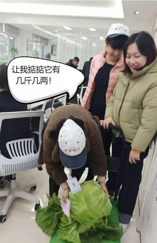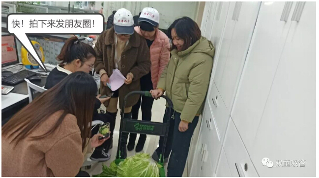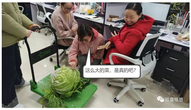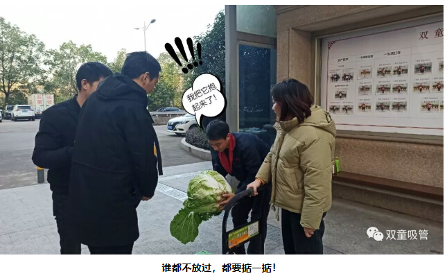 進(jìn)入辦公室以后,依舊沒(méi)有被“放過(guò)”!大家看到如此大的白菜,都伸出手來(lái),想要沾沾“大”氣!