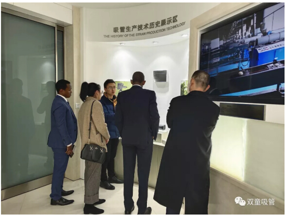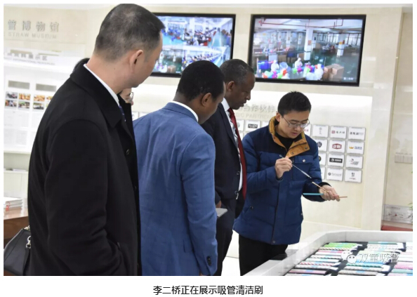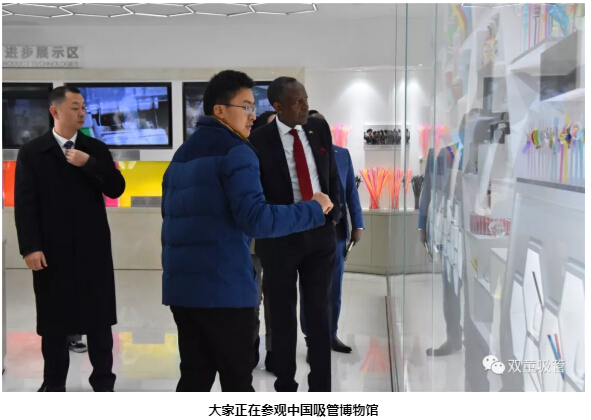 首先,“雙童”李二橋帶領(lǐng)大家來到了中國吸管博物館。大使一行參觀了這里展示的700余種吸管,了解了吸管的發(fā)展與變遷。