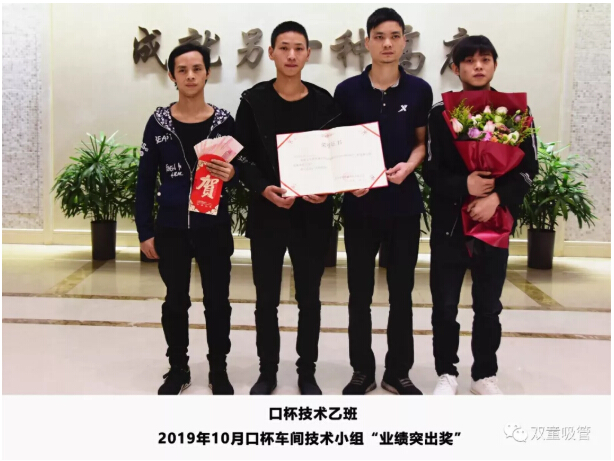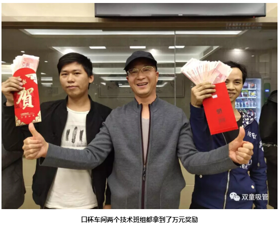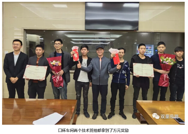 11月8日,在“雙童”隆重召開的10月份優(yōu)秀奮斗者表彰大會上,口杯車間的兩個技術(shù)班組獲得了萬元獎勵,成為公司生產(chǎn)班組的標(biāo)桿!