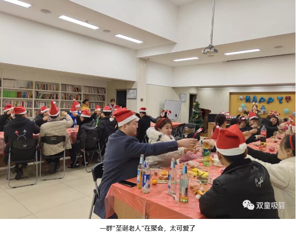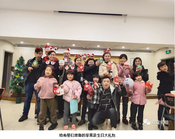快看,壽星們?nèi)耸忠粋€平安果,頭上還有一頂可愛的圣誕帽子,可愛極了!乍一看,還以為是一群圣誕老人在聚會呢!