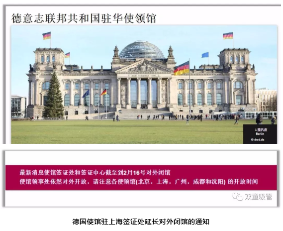 但因春節(jié)期間突如其來的肺炎疫情影響,各國簽證中心都暫停了辦理簽證業(yè)務(wù)并拒絕中國公民入境。1月23日,上海簽證中心通知德國使館駐上海簽證處通知簽證中心截止至2月16日對(duì)外閉館,“雙童”的簽證被扣置。