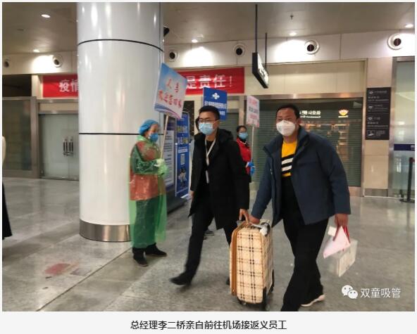 其中,“雙童”的5位陜西籍員工也乘坐此列免費(fèi)航班返義,他們是“雙童”的技術(shù)人員、成型工、包裝工、司機(jī)等等,他們的到來(lái)將大大緩解“雙童”的復(fù)工壓力。