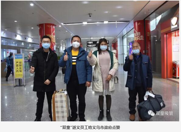 無(wú)論百里千里,義烏都會(huì)想辦法來(lái)接你!義烏市政府出錢(qián)、出力,全力幫助企業(yè)接回員工!這對(duì)“雙童”來(lái)說(shuō),是企業(yè)復(fù)工復(fù)產(chǎn)經(jīng)濟(jì)恢復(fù)正常軌道的巨大支持。
