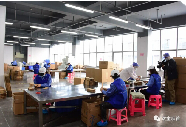 從2月25日開始,上崗的工會機(jī)關(guān)干部、婦聯(lián)志愿者相繼來到“雙童”,經(jīng)過測量體溫、消毒登記、查看健康碼、更衣?lián)Q帽等一系列防疫流程后,進(jìn)入了包裝車間。