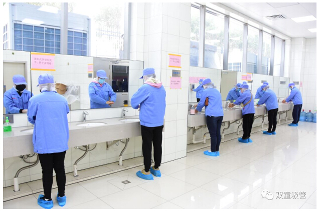3月2日早上8點,近30位阿蓮共享員工們來到“雙童”,經(jīng)過測量體溫、入職登記、查看健康碼、軌跡卡等一系列防疫流程后,陸續(xù)換上工作服,帶上工作帽,經(jīng)過風淋、洗手、烘干、消毒等一系列衛(wèi)生防護流程后,正式進入“雙童”車間上崗啦!