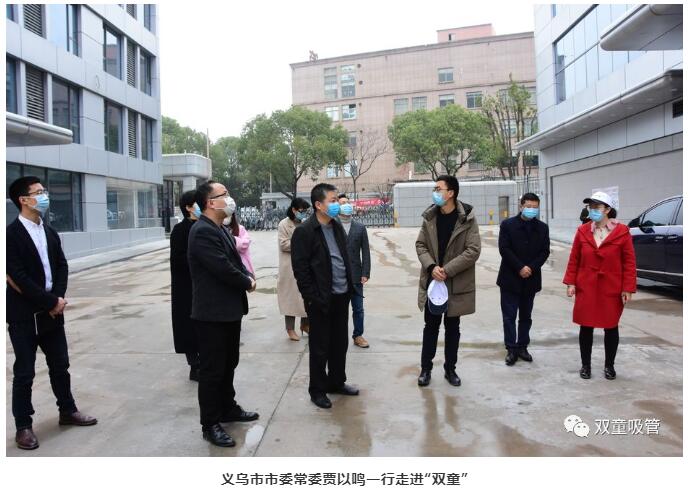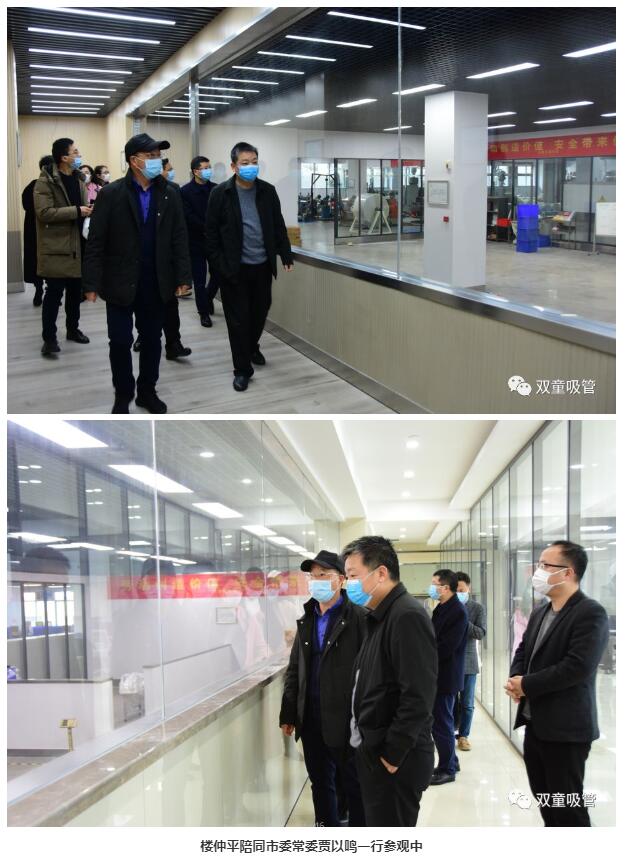 首先,在“雙童”樓仲平與總經(jīng)理李二橋的陪同下,市委常委賈以鳴一行簡單參觀了“雙童”復(fù)工下各車間的生產(chǎn)狀態(tài)。