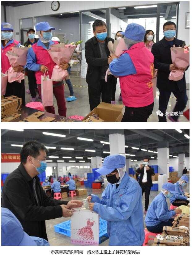 春意融融,百草吐芳。3月8日上午,時(shí)值“三八”國際勞動(dòng)?jì)D女節(jié),義烏市市委常委賈以鳴一行走進(jìn)“雙童”,慰問企業(yè)一線辛勤付出的女職工們,并為他們獻(xiàn)上了鮮花及節(jié)日祝福!