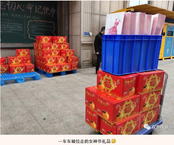 一箱箱椪柑,一套套精美小禮物,看的男同胞們都直呼想要呢。不過,這份專屬于女職工們的福利,快看我們各位女神抱著禮物開心的樣子,別急別急,留一套給吸管妞哈!