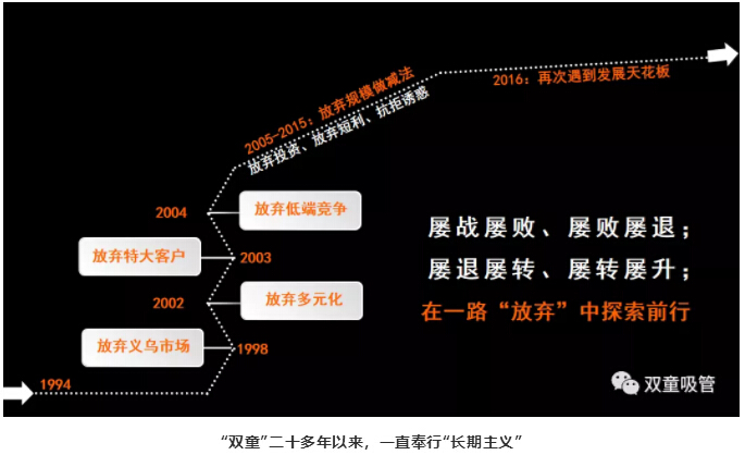 答:這些年來(lái),‘’活下去”確實(shí)已經(jīng)成為“雙童”最大的使命。對(duì)我們而言,提出“活下去”這樣一種危機(jī)理論,是因?yàn)樵谕獠縿?dòng)蕩環(huán)境下,計(jì)劃沒(méi)有變化快,這就要求企業(yè)做出轉(zhuǎn)變,這種轉(zhuǎn)變是內(nèi)在的,其本質(zhì)是提醒組織成員,通過(guò)直面“死亡”,獲得反悟,讓自己重生。并且,我們所說(shuō)的“活下去”,并不是茍且偷生,而是要有價(jià)值、有尊嚴(yán)地“活下去”,唯有如此,這樣的使命對(duì)“雙童”的長(zhǎng)期發(fā)展才更有意義。