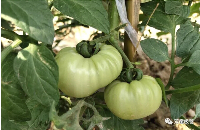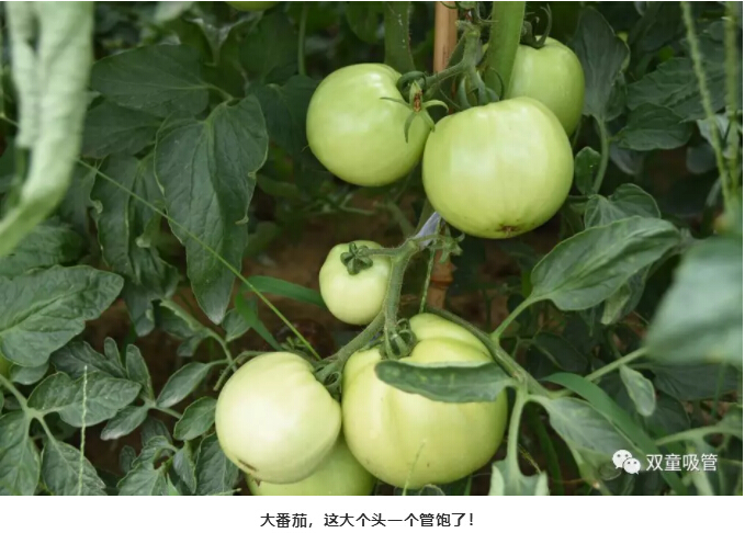 瞧,今年的番茄種植面積比去年可增加了不少,一根藤上依舊是碩果累累,結(jié)出好幾個番茄,大的,小的......看著這番茄的個頭,吸管妞吃一個都管夠了!