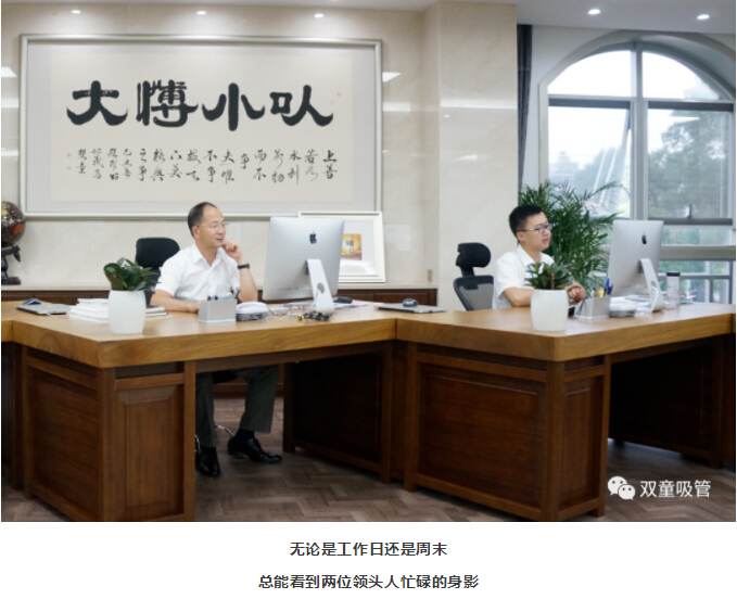 特別是在“雙童”新建二期廠房期間,無(wú)論是周末還是節(jié)假日,總能在公司里看到樓仲平及總經(jīng)理李二橋的身影,對(duì)他們而言,“白+黑”,“5+2”是再正常不過(guò)的事了,特別是樓仲平時(shí)常忙得連吃飯都沒(méi)有時(shí)間,往往點(diǎn)個(gè)外賣(mài)邊吃邊工作了事。