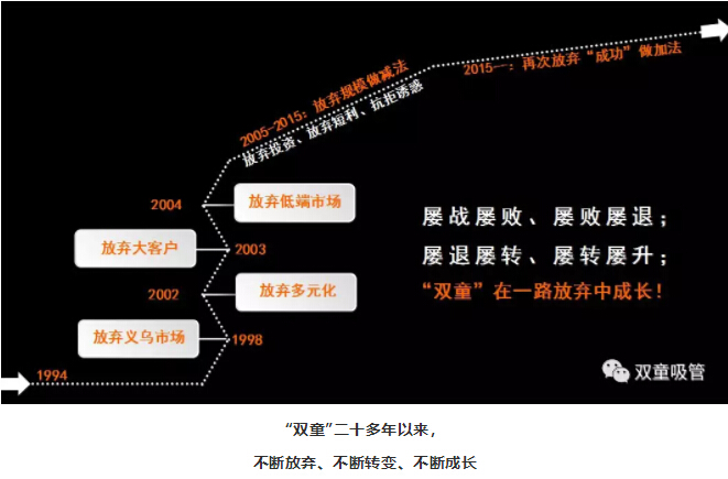 2003年,“雙童”放棄了多元經(jīng)營(yíng),放棄了低價(jià)貼牌加工的“大客戶”,提出了“兩條腿走路”和“小客戶原則”;