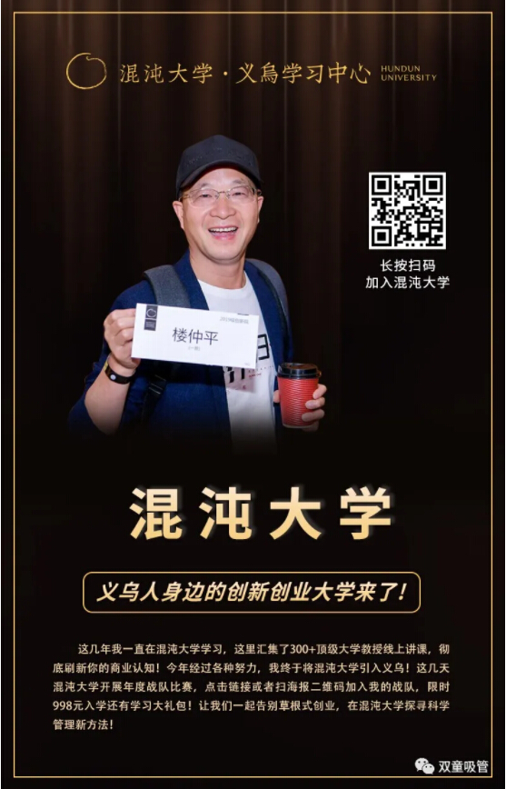 即日起,加入“雙童”樓仲平混沌大學(xué)創(chuàng)新學(xué)院戰(zhàn)隊,