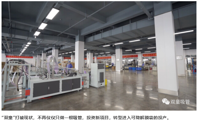 但通過“雙童”團(tuán)隊(duì)一致的努力,“雙童”購置的新設(shè)備陸續(xù)到位,新項(xiàng)目也開始投產(chǎn),目前,“雙童”除了能生產(chǎn)各類吸管之外,還能生產(chǎn)可降解保鮮袋、垃圾袋等新產(chǎn)品。