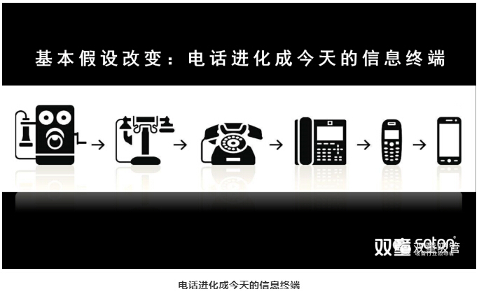 從最初語(yǔ)音傳播的工具到互聯(lián)網(wǎng)信息的主要傳播工具,電話的演變過程不正是工業(yè)化范式向互聯(lián)網(wǎng)范式的轉(zhuǎn)換嗎?如果你還認(rèn)為電話僅僅是用來語(yǔ)音傳播的,那它一定會(huì)成為你的絆腳石。