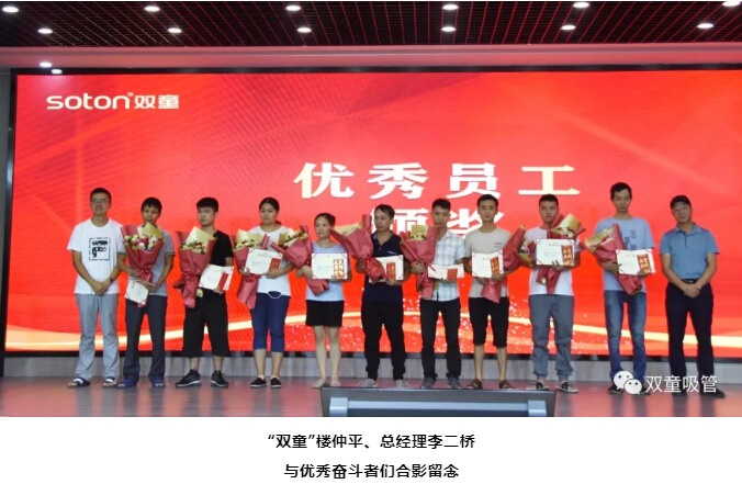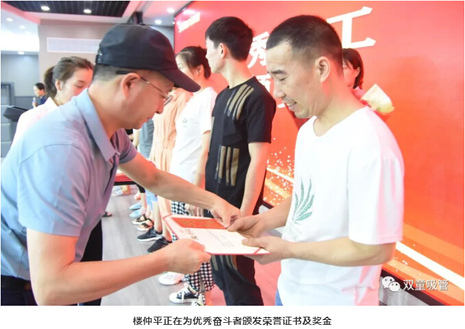 年初針對(duì)企業(yè)招工,“雙童”推出伯樂爭霸賽,鼓勵(lì)員工“以老帶新”。在此次員工大會(huì)上,“雙童”也對(duì)為企業(yè)注入新生力量做貢獻(xiàn)的員工們進(jìn)行了表彰!