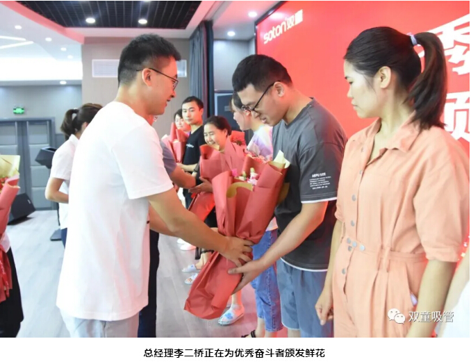 會(huì)上,“雙童”樓仲平及總經(jīng)理李二橋?yàn)閮?yōu)秀奮斗者們頒發(fā)了鮮花、獎(jiǎng)金以及榮譽(yù)證書,并與優(yōu)秀奮斗者們合影留念。