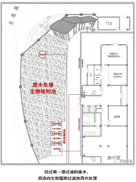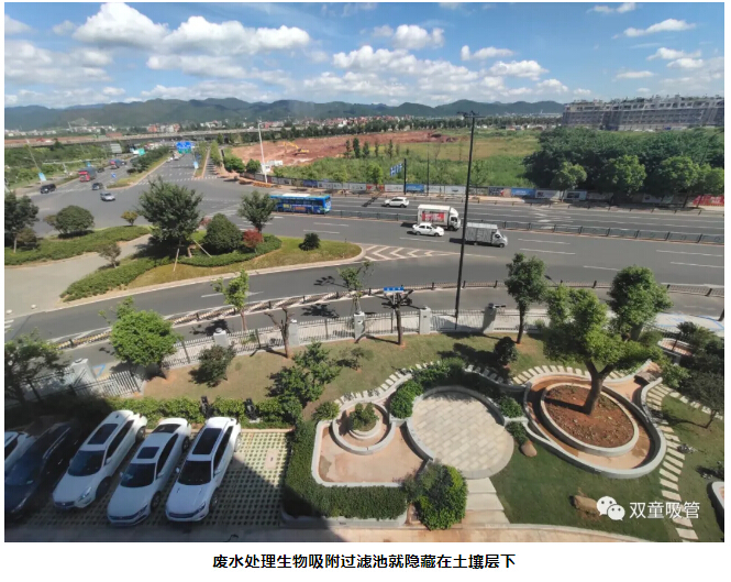 在這個(gè)過(guò)程中,員工日常生活中所產(chǎn)生的廢水過(guò)濾后,會(huì)流向生物吸附過(guò)濾池中,通過(guò)過(guò)濾池上栽種的樹木根須對(duì)水中的物質(zhì)、養(yǎng)分進(jìn)行再次吸附處理,這不僅能再次過(guò)濾處理廢水,同時(shí)也能樹木生長(zhǎng)的越來(lái)越好。