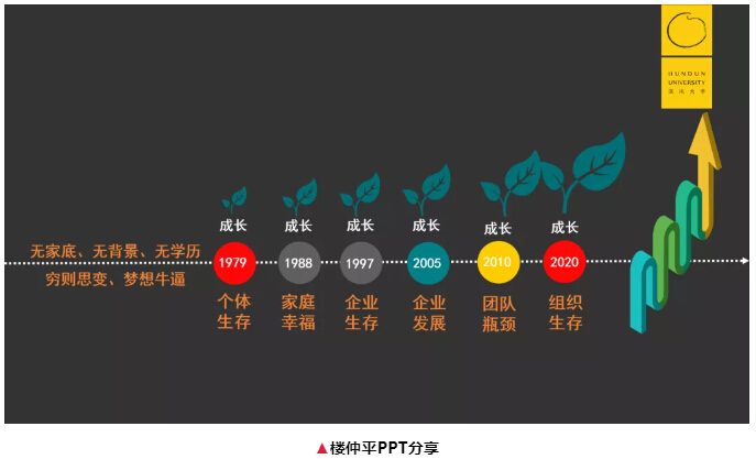 萬(wàn)物之中成長(zhǎng)最美、對(duì)于創(chuàng)業(yè)者(或企業(yè))來(lái)說(shuō)沒有所謂的成功、只有所謂的成長(zhǎng)!在課程分享中,樓仲平分享了自己如何突破原來(lái)的認(rèn)知瓶頸一步步成長(zhǎng),并引導(dǎo)“雙童”打開自我設(shè)限的產(chǎn)業(yè)天花板,打開團(tuán)隊(duì)與企業(yè)共同成長(zhǎng)的傳統(tǒng)管理枷鎖,從而在外部環(huán)境持續(xù)動(dòng)蕩下“活下去"!