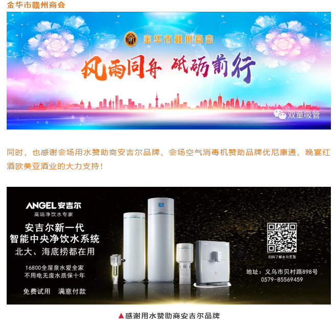 同時(shí),也感謝會(huì)場(chǎng)用水贊助商安吉爾品牌、會(huì)場(chǎng)空氣消毒機(jī)贊助品牌優(yōu)尼康通、晚宴紅酒歐美亞酒業(yè)的大力支持!