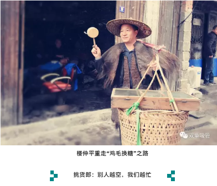當然,在整個過程當中我也很享受,我們出去換雞毛,換到雞毛越多我們就越高興,干活就越有勁。在這樣高強度的勞動當中也鍛煉了自己,讓我現(xiàn)在不會太計較于自己的休息時間,也沒有節(jié)假日的特殊對待。挑貨郎擔不講究節(jié)假日,也不講究除夕,越是別人過節(jié)的時候反而是挑貨郎最忙的時候!