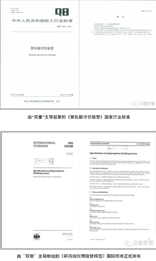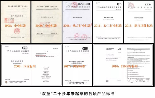 所以,在大多數(shù)人還沒有意識到標準的重要性時,“雙童”在20多年前就意識到了。從1997年開始,“雙童”先后主導起草了《聚丙烯飲用吸管》的行業(yè)標準、浙江標準、國家標準、ISO國際標準等國家級標準的編制工作,從而牢牢掌握住全球吸管行業(yè)發(fā)展的脈搏,獲得了全球吸管產業(yè)的標準制定權和行業(yè)話語權!