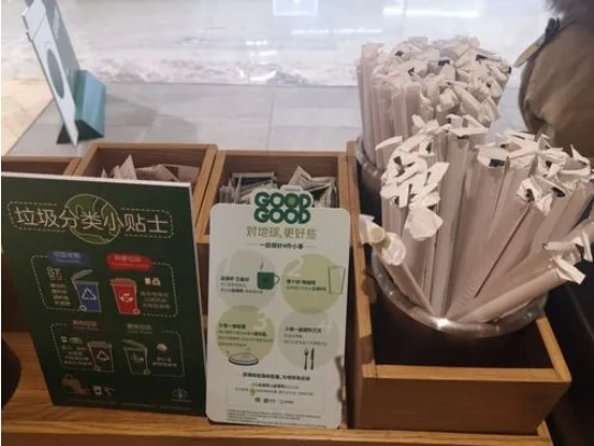 位于南京市的一家星巴克門(mén)店為消費(fèi)者提供紙質(zhì)吸管