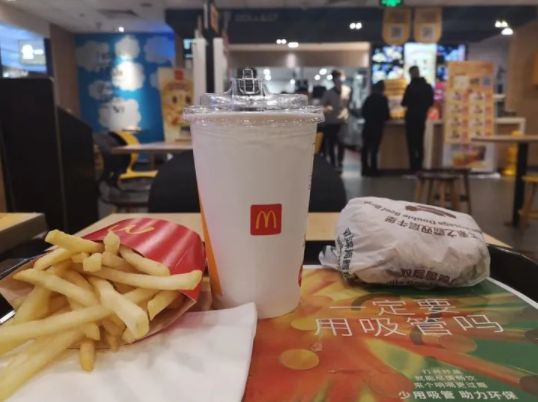 位于南京市建鄴區(qū)的一家麥當(dāng)勞門(mén)店停用塑料吸管,消費(fèi)者可通過(guò)新型杯蓋直接飲用冷飲