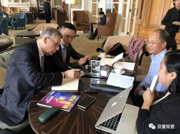 在采訪過(guò)程中,西蒙教授就中國(guó)隱形冠軍三方面的顯著特征、隱形冠軍的成敗因素以及隱形冠軍的聚焦點(diǎn),與樓仲平一行人展開(kāi)思維碰撞。事后,西蒙教授將雙童收錄至《隱形冠軍—未來(lái)全球化的先鋒》一書(shū)的案例之中,并將親筆簽名書(shū)籍贈(zèng)予了樓仲平。“雙童”樓仲平與鄧地博士及《中外管理》團(tuán)隊(duì)