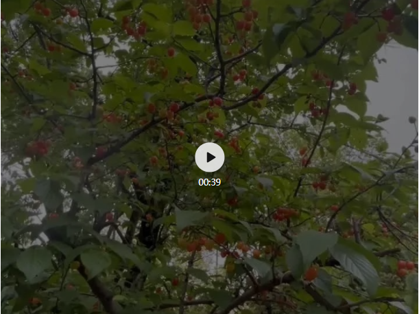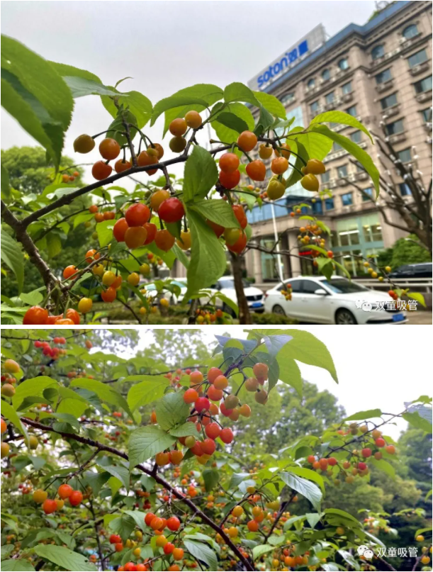 看!“雙童”的櫻桃樹(shù)上綴滿了櫻桃果,茂密的櫻葉也遮蓋不住紅橙相間的果實(shí)?!靶艋\”們散發(fā)出陣陣誘人果香,讓人不禁胃口大開(kāi),口水直流!